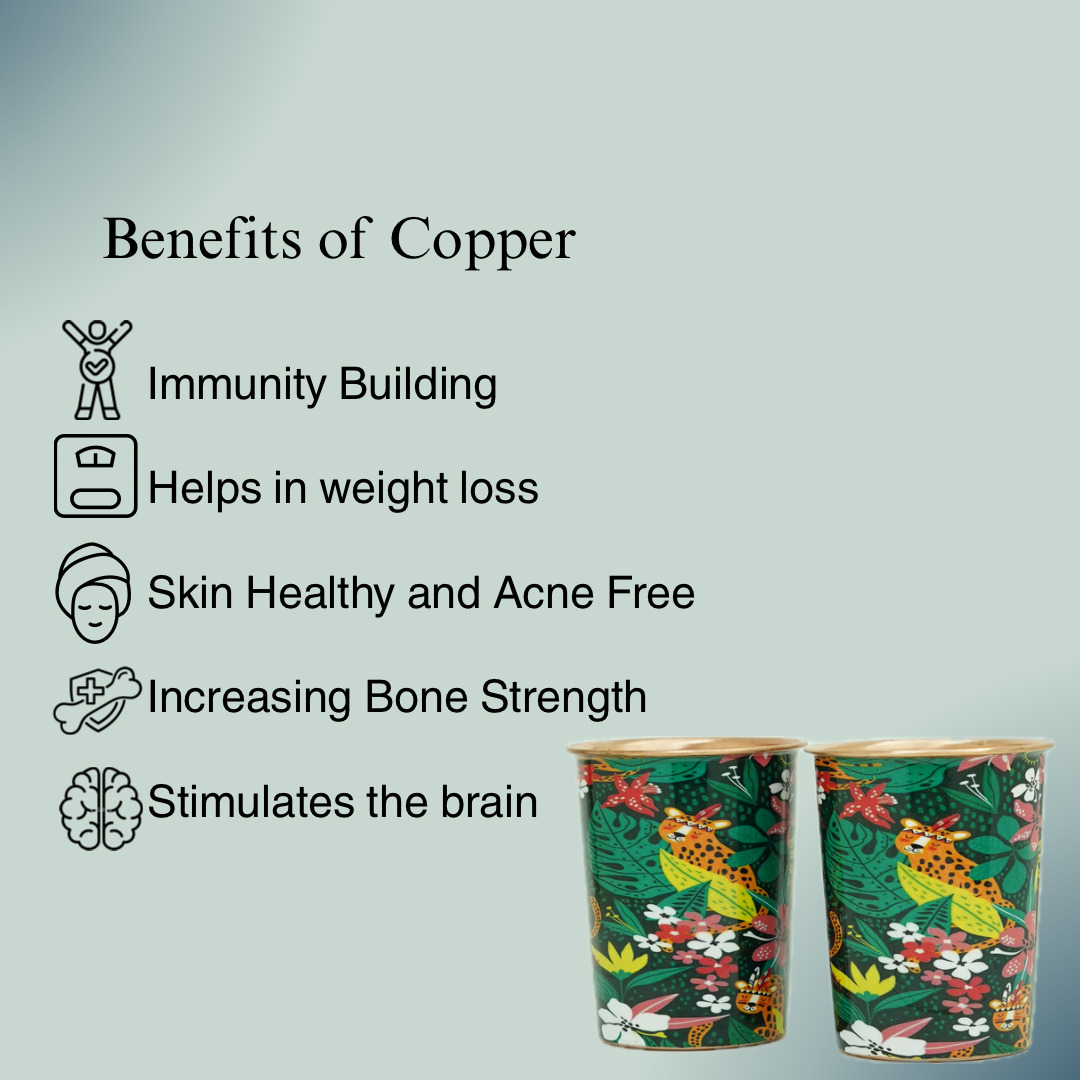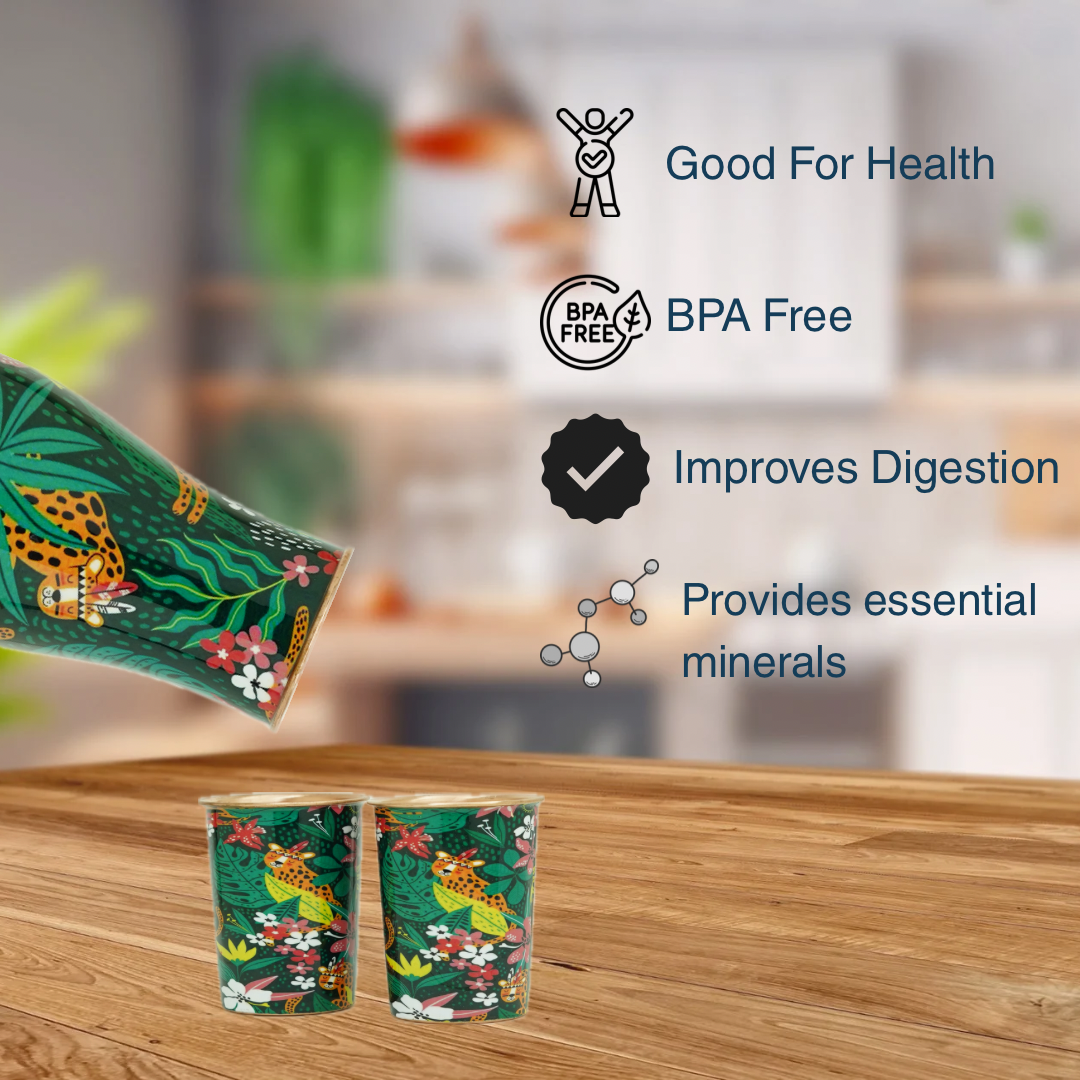 Copper Bedside Bottle with 2 Glass Set (Green Multicolor)